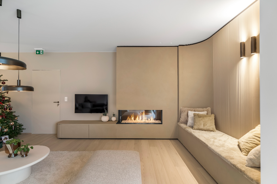 - Gemeenschappelijke leefruimte met gezellige gashaard en ruime salon